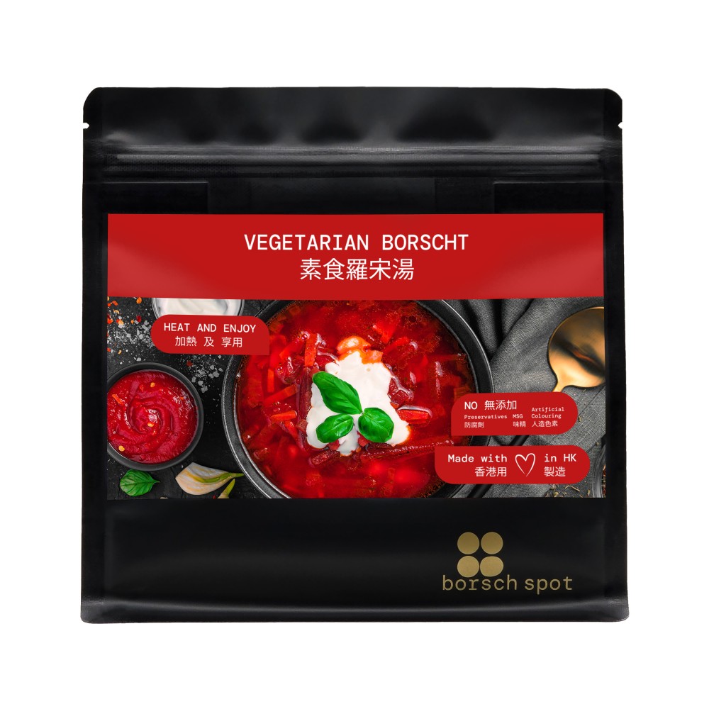 Ingredients: Beetroot, beetroot leaf, onion, carrot, bell pepper, tomato, chopped tomato, celery, potato, cabbage, kidney bean, rassol, tomato paste, sauerkraut, bean stock, cooking oil, salt, alkaline water.